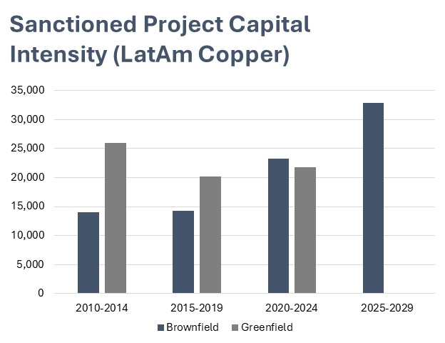 The total capital intensity in our model equates to approximately US$29,000 per tonne of annual copper-equivalent, which is in line with recent greenfield projects but more expensive than projects sanctioned from 2020 to 2024, reflecting the extreme scale of infrastructure needed to unlock multi-decade, district-wide development potential.