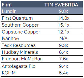 It is important to note that we include the build of the water asset on day one; however, LUN already owns a 500-liter- per-second desalination plant at Punta Padrones, which has 300 liters per second in spare capacity, as well as a pipeline to Candelaria. Although overly conservative and likely wrong, we were unable to devise a method for confidently estimating the cost of growing these assets versus building new ones. This is unfortunate, as we believe that there will be cost savings associated with existing infrastructure. Still, we will have to wait until 2026 to see if LUN/ BHP utilizes those assets in their development plan and the cost savings (or lack thereof) associated with the existing infrastructure.