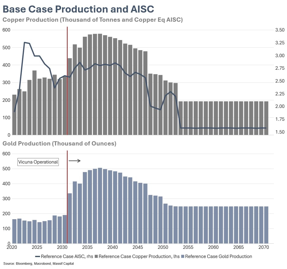 With these three strategic pillars in place, one of which is completed, and two of which are in process, Management’s five-year plan targets growth in copper production from the current range of 300,000 to 330,000 tonnes annually to over 350,000 tonnes, and once Vicuna is operational (2030/2031), to 500,000 tonnes per year. At the same time, management believes they can increase gold production from the current range of 135,000 to 150,000 ounces per annum to over 200,000 ounces per year within the next five years, and with a long-term goal of 550,000 ounces annually. The growth in gold production is particularly valuable, given gold’s role as a natural hedge against copper price volatility and its contribution to overall margin stability.